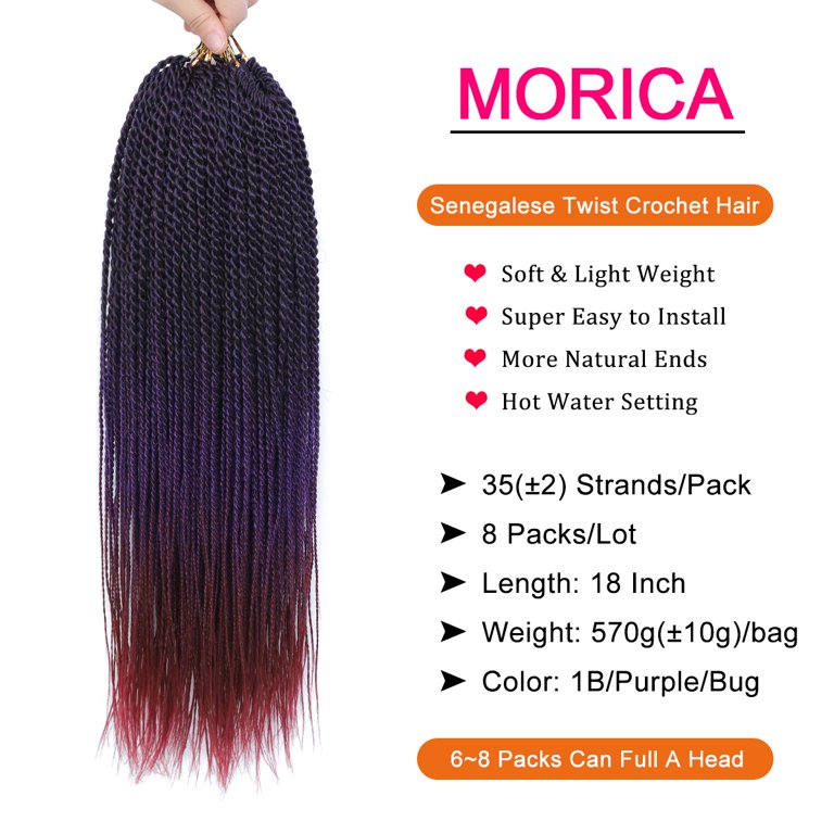 Morica Crochet Hair Senegalese Twist 18 Inch 8 Packs Small Crochet Hair For Braiding Crochet Braids Hair For Black Women Crochet Braids Twist Hot Water Setting 18 Inch 1b Purple Bug Walmart Com